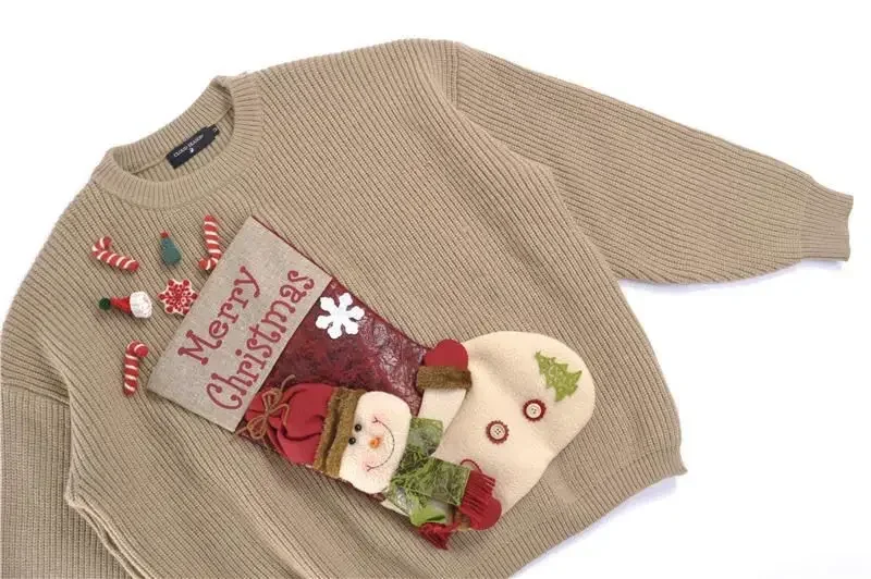 2026 Christmas Embroidery Loose Sweet Simple Jumper Pullover 3D Flower Knit Heavy Knitted Korea Goth New Feminine Tops Sweaters