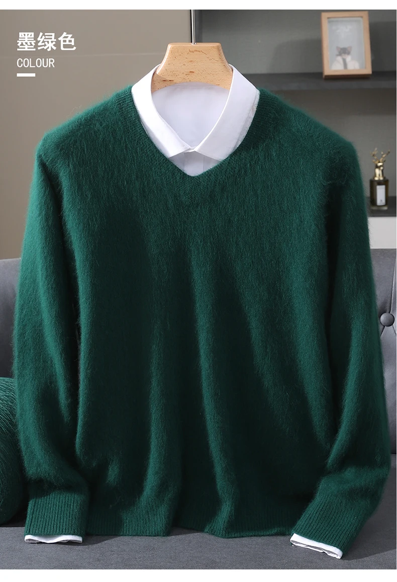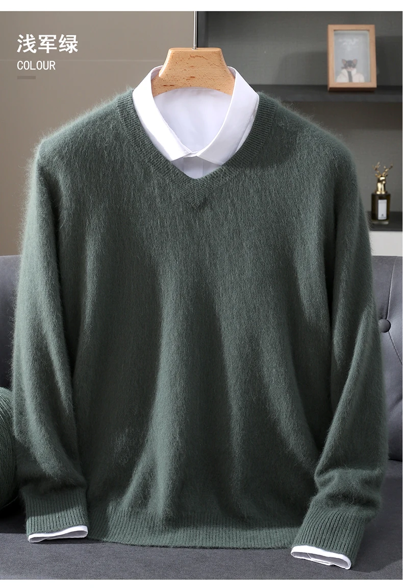 Men’s V-Neck Cashmere Wool Sweater – Soft Luxury Knit Pullover for Autumn & Winter