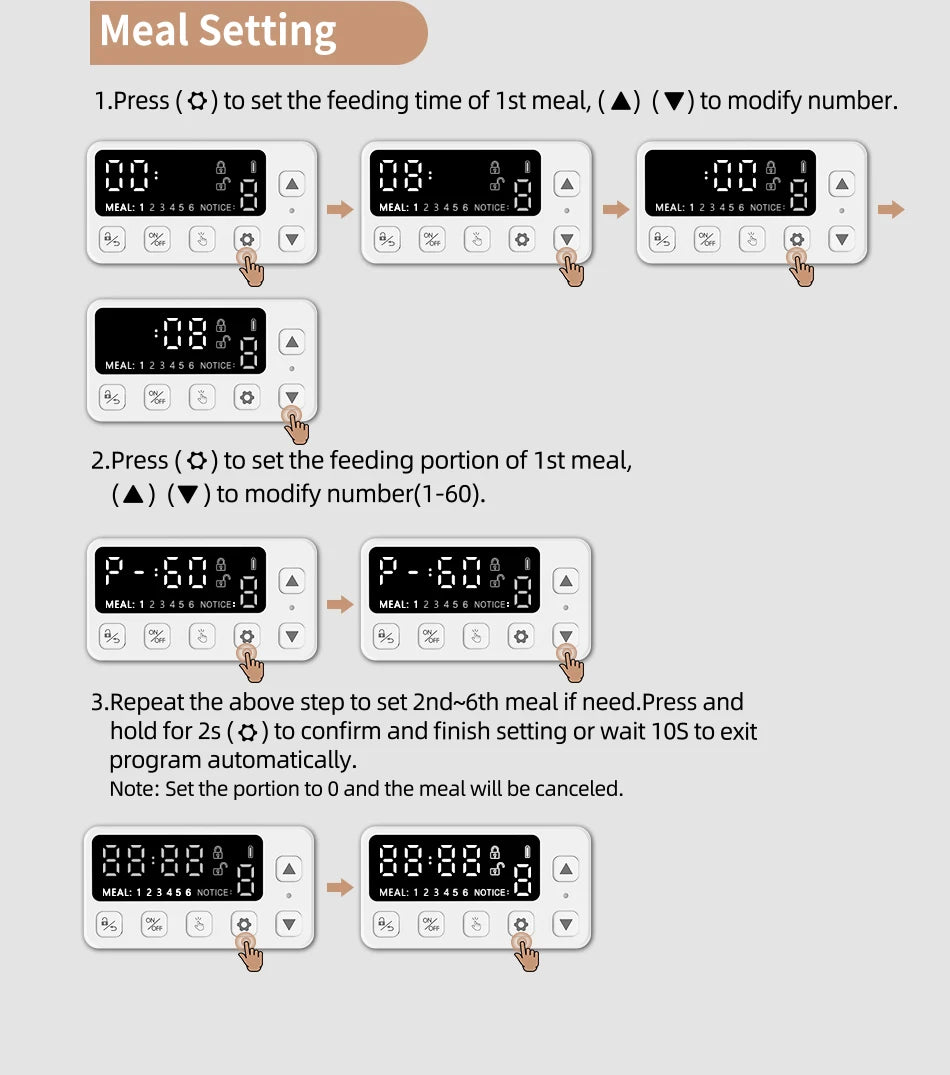 Scheduled Feeding: Program up to 10 meals per day to ensure consistent feeding, even when you’re out.