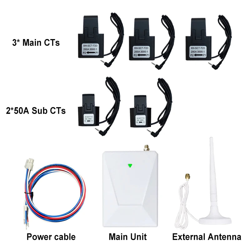- Includes 5 CT clamps: 3 × 200A for power lines + 2 × 50A for solar input/output