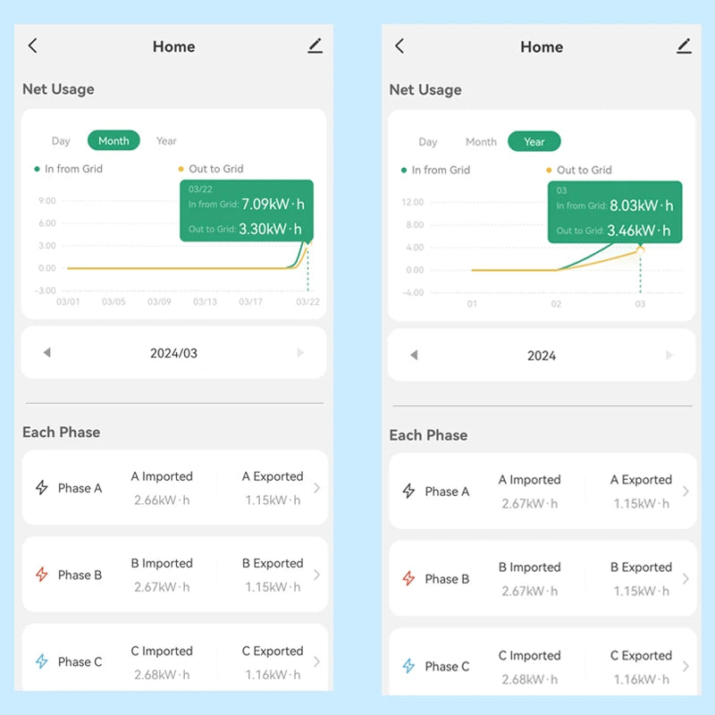 • Bi-Directional measurement:Show how much energy you are