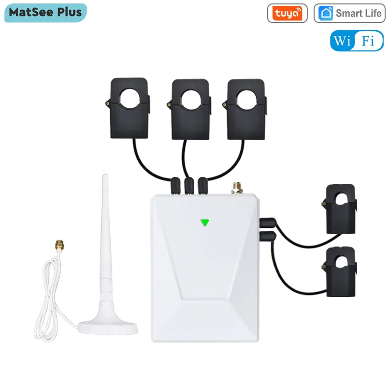 “Tuya WiFi 3-Phase Smart Energy Meter – Bidirectional Power Monitor with 5 CT Clamps (3×200A + 2×50A) for Solar PV Systems”