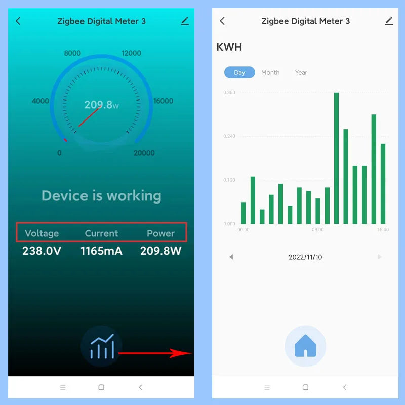 App Real Time Monitor Energy Consumed KWh. Voltage, Current, and Power, also can Monitor Device Working Status