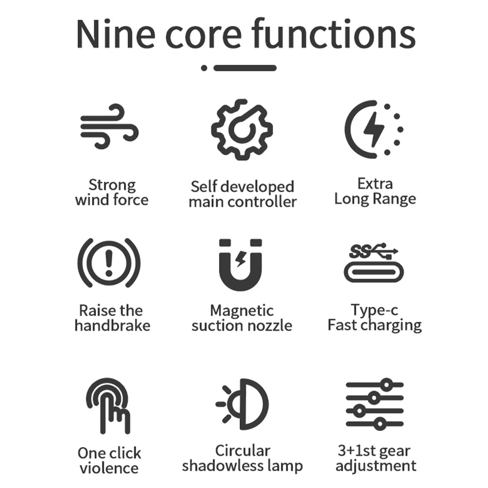High-Speed Performance: 120,000RPM brushless motor for strong, consistent airflow.