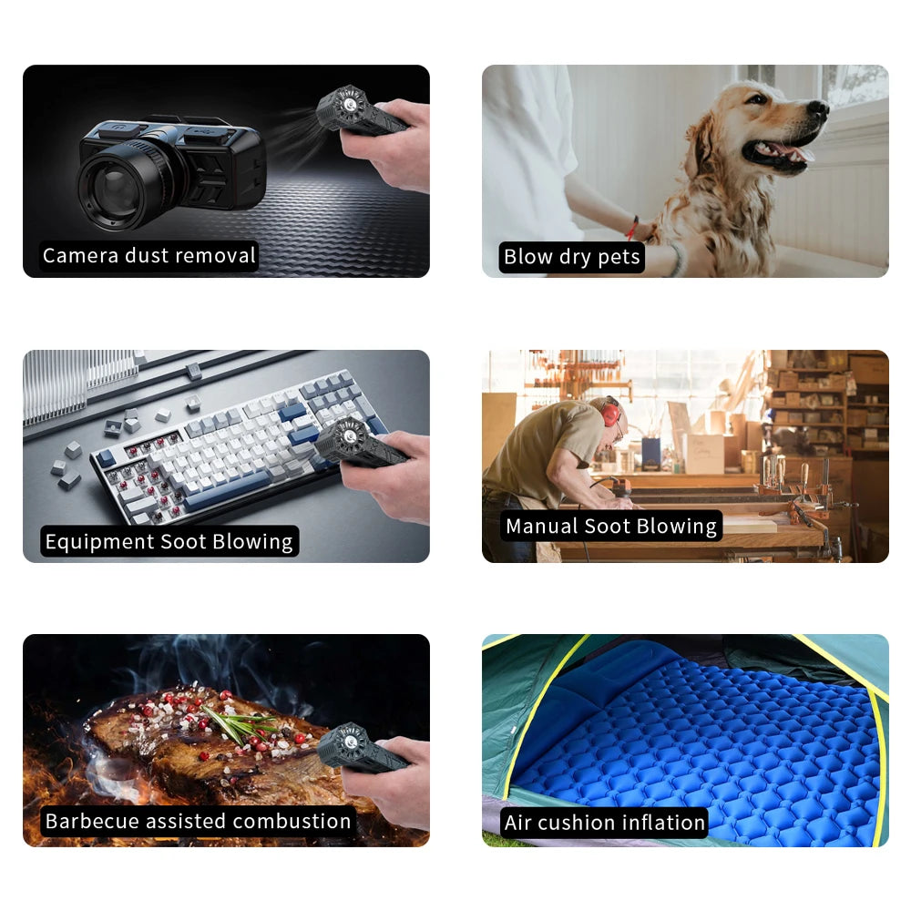 4.Suitable for air cushion blowing suction, computer equipment cleaning, industrial dust blowing, charcoal combustion, car blowing water blowing snow, studio shooting wind, blow-drying pets, available in all seasons, and many other uses.